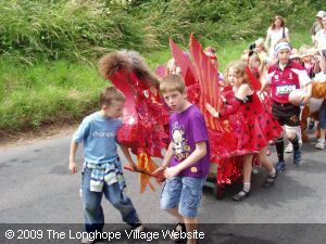 Once again, the sun made a glorious appearance in time for the start of Longhope 84th fête. Due to recent refurbishments at the Rec this year, the fête was held in the grounds of Hope Brook C of E School, making good use of the hall and playing fields. The Rec had been freshly cut especially for viewing. The procession, starting from the Manor House this year, was delayed by several minutes while everyone waited for the police escort to arrive. It turned out they had arrived at Richard Read's wondering where everyone was! Residents of the Manor House (a nursing home) could enjoy the fête too this year.