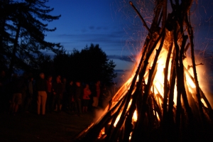 Everyone just stood and watched and sort of waited. Then, without any prompting, everyone sang the National Anthem. It was a moving experience. Wine, chat and laughter filled the sky. There were a few excellent fireworks on the Hill but we were treated to a firework display all around us. We were able to see many lit beacons in every direction.