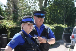 | Our two new PCSOs, Julia and David | The Procession in The Latchen | Dave East doing his Royal wave, with Sue |