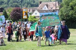The Procession started at 1.45pm from The Latchen, but the police escort and the car containing the Carnival Prince and Princess proceeded with such a speedy lick that the walkers had no chance of keeping up with them. But then, it was the first time that Sue Clarke (mentioning no names) was asked to carry out this transporting of such a valuable cargo. If you must own a lovely looking soft top, then you should expect to be asked to do the job!! Anyway, the rest of the procession carried on regardless, with the music produced by Pippins singing “Old Macdonald” as they wound their way to the Rec. Once there, the Fête was opened by the newly retired Longhope Postie of 43 years, Dave East (well we do have to keep him occupied don’t we?)