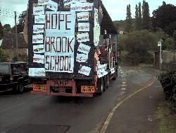 | The Playgroup float - "Elmer the Elephant" | Drybrook Band at the start of the procession | Hope Brook School float, the eventual winners |